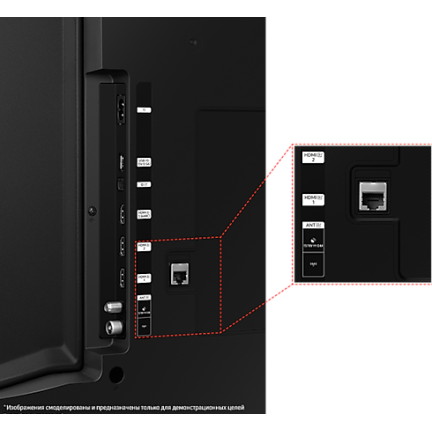 С разъемами Ethernet (RJ-45) и HDMI (3 штуки) телевизор предоставляет возможность подключения к интернету и внешним устройствам. Он также поддерживает Dual Audio через Bluetooth, что позволяет вам наслаждаться мультимедийным контентом в удобном формате.