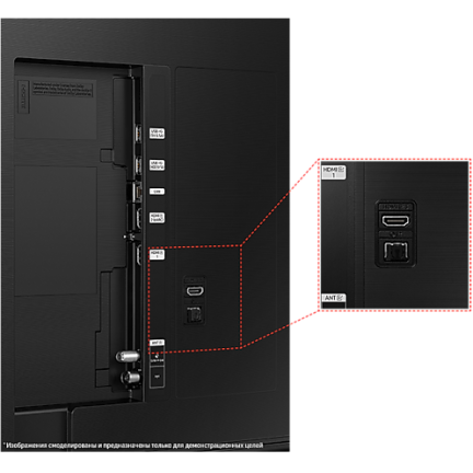 Телевизор оборудован тремя разъемами HDMI, разъемом Ethernet (RJ-45) для устойчивого интернет-соединения и дополнительными возможностями подключения через Bluetooth, Wi-Fi (Miracast) и Wi-Fi Direct. Это обеспечивает максимальную гибкость при подключении ваших устройств и использовании различных технологий беспроводной связи.